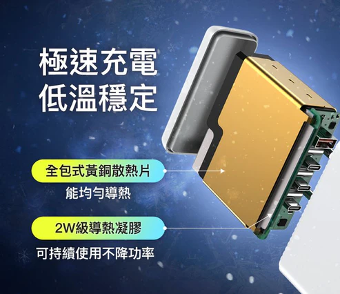 【輕巧便攜體積小】採用GaN氮化鎵半導體技術,體積小巧,散熱優異,充電更快速安全