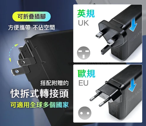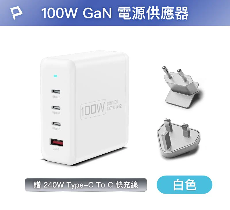 ◎ 產品名稱:POLYWELL 100W電源供應器 (內附多國轉接頭和240W快充線)