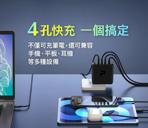 【POLYWELL】100W 充電頭 附出國轉接頭 Type-C+USB-A 四孔 可充筆電 BSMI