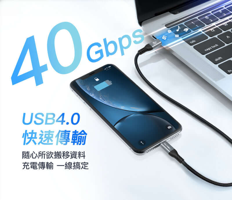 【USB4.0 40Gbps傳輸】支援超高速資料傳輸,充電與傳檔同步進行更有效率
