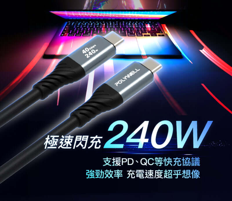 ◎ 產品名稱:POLYWELL USB4.0 Type-C 240W 快充編織線