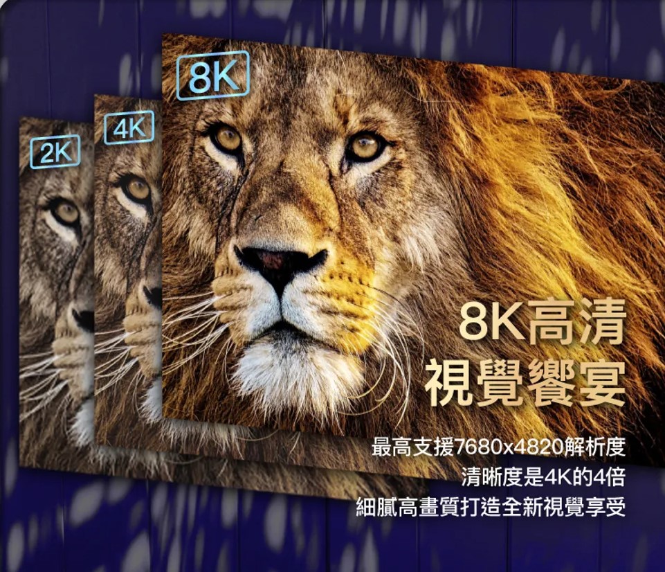 支援8K@60Hz超高解析度和4K@144超高速影像移動傳輸