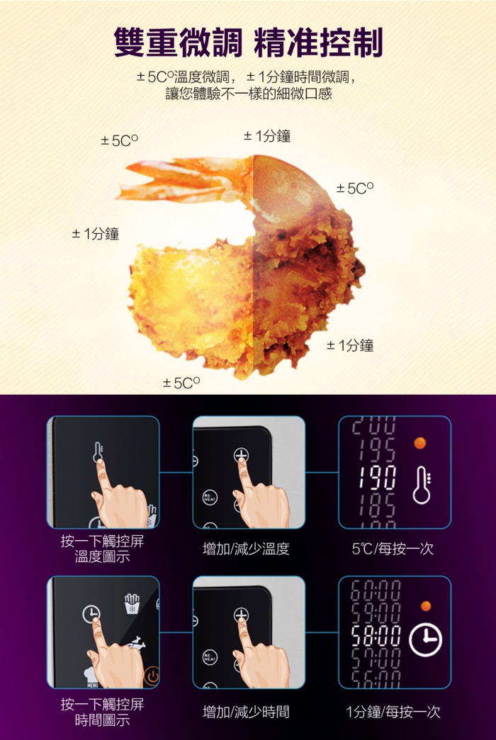 •高速空氣對流技術,利用熱空氣煮食物,不加油也可做到油炸效果