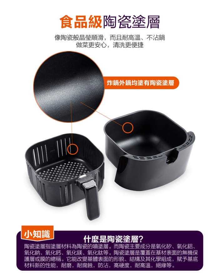 •食品級陶瓷塗層 ,耐高溫、不沾鍋
