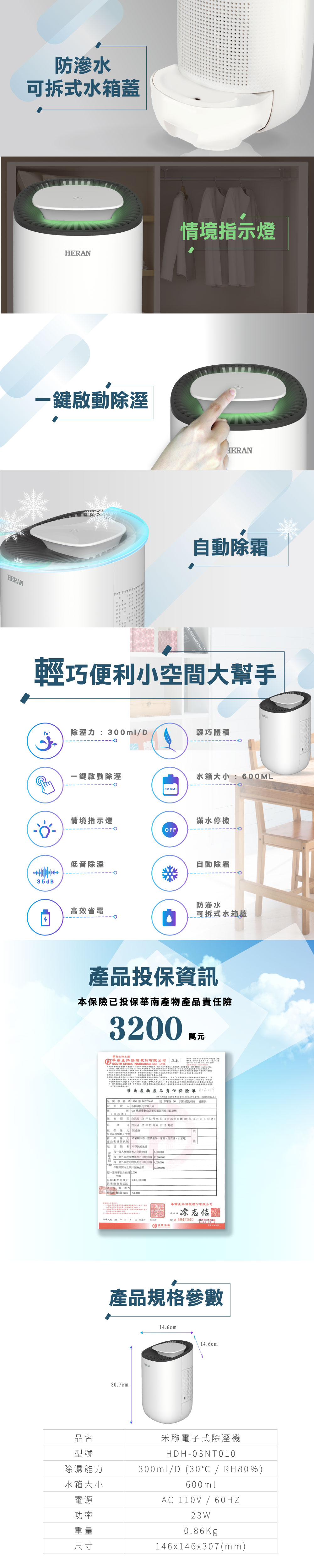 【禾聯HERAN】 迷你電子式除濕機 HDH-03NT010