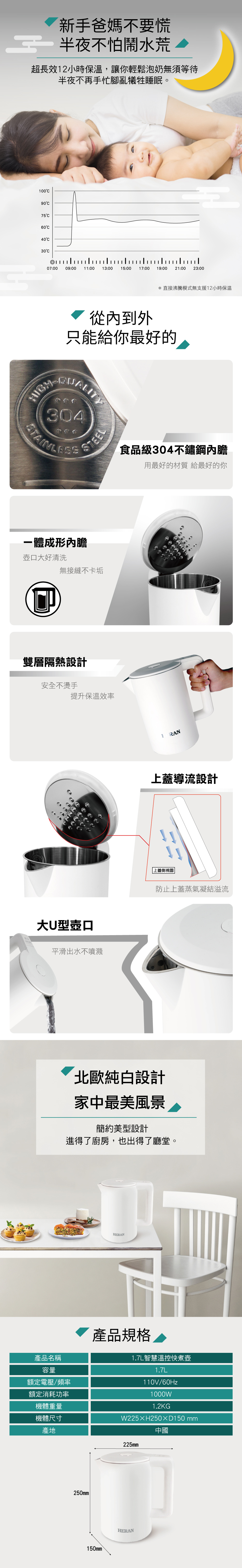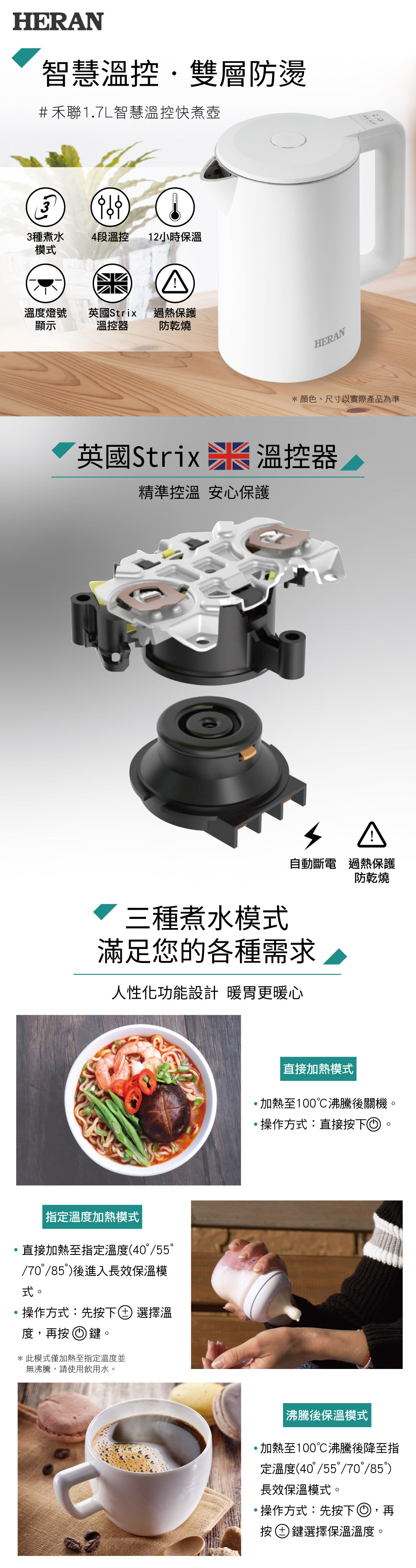 【Heran 禾聯】 HEK-17GL010 1.7L智慧溫控快煮壺