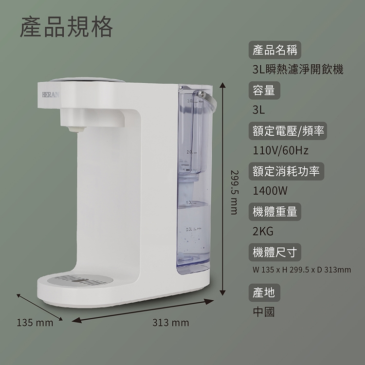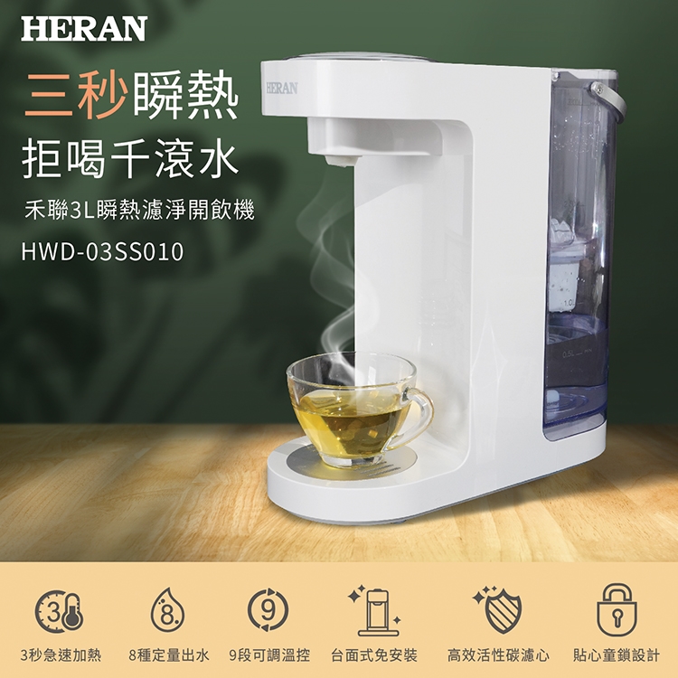 【HERAN禾聯】 瞬熱濾淨開飲機 HWD-03SS010 3秒瞬間加熱 附活性碳濾心
