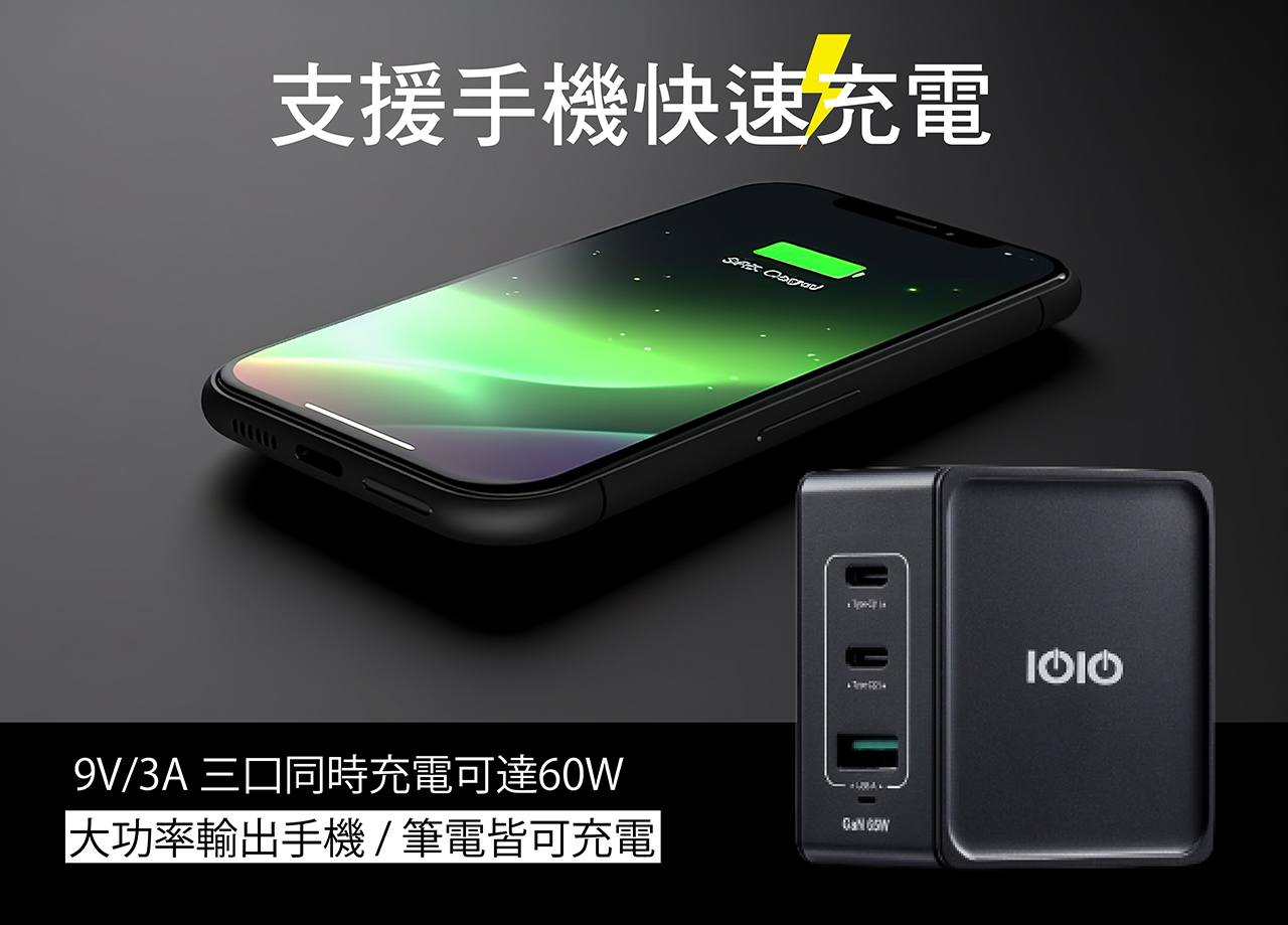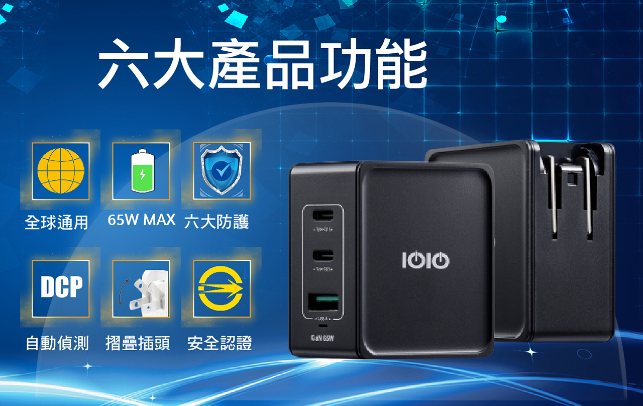【IOIO】回饋好禮 65W氮化鎵PD充電器 三孔PD快充頭 ADU500 / 3065