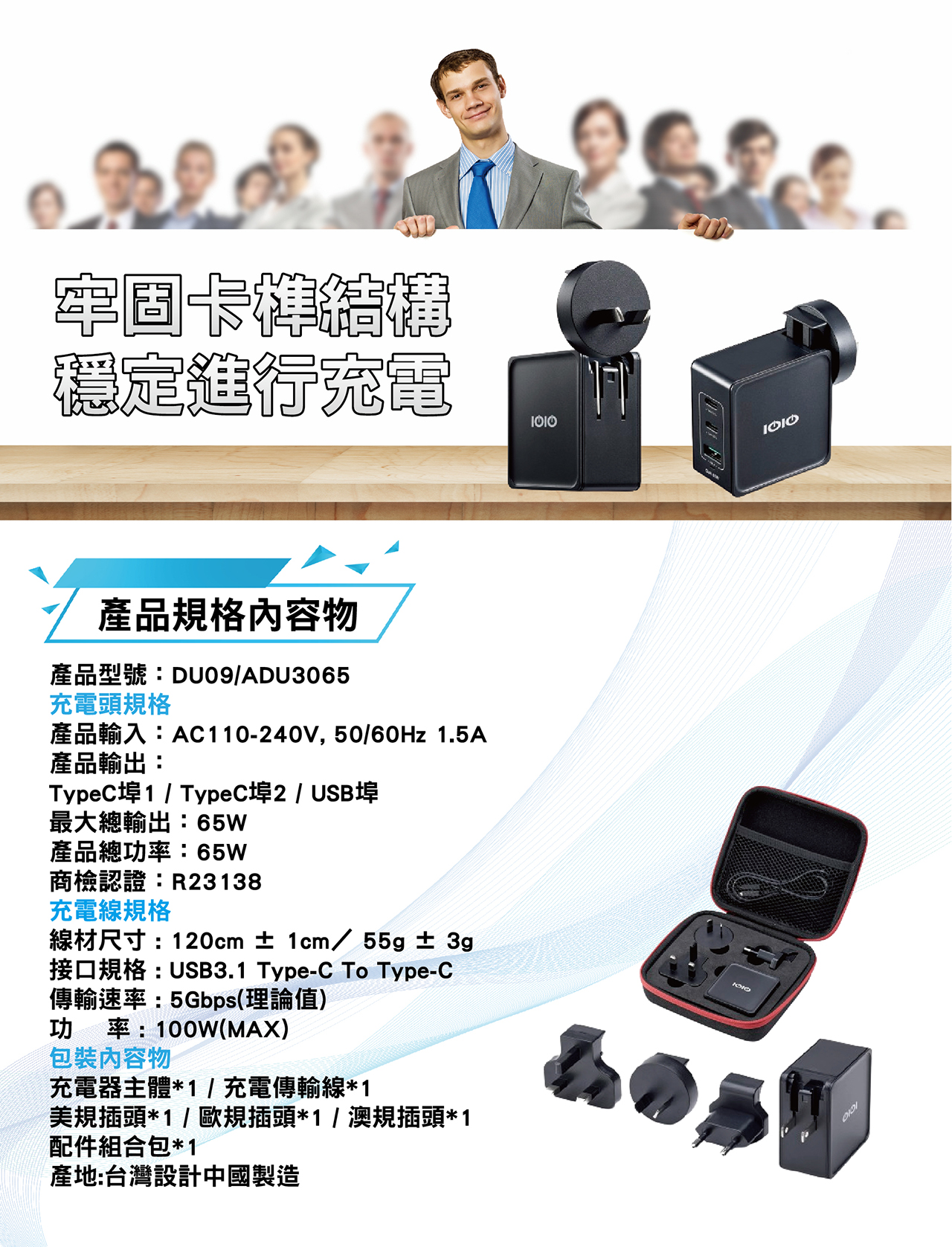 【IOIO】回饋好禮 65W氮化鎵全球用急速充電組 萬用轉接頭 旅行充電 DU09/3065