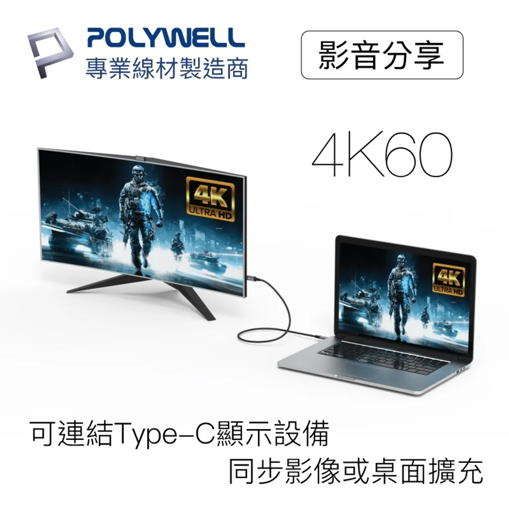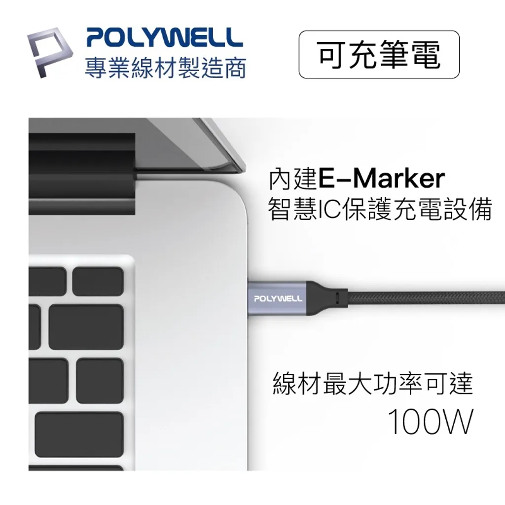 【POLYWELL】USB 3.1 Gen2 10G 100W Type-C 高速傳輸充電線 1m / 2m