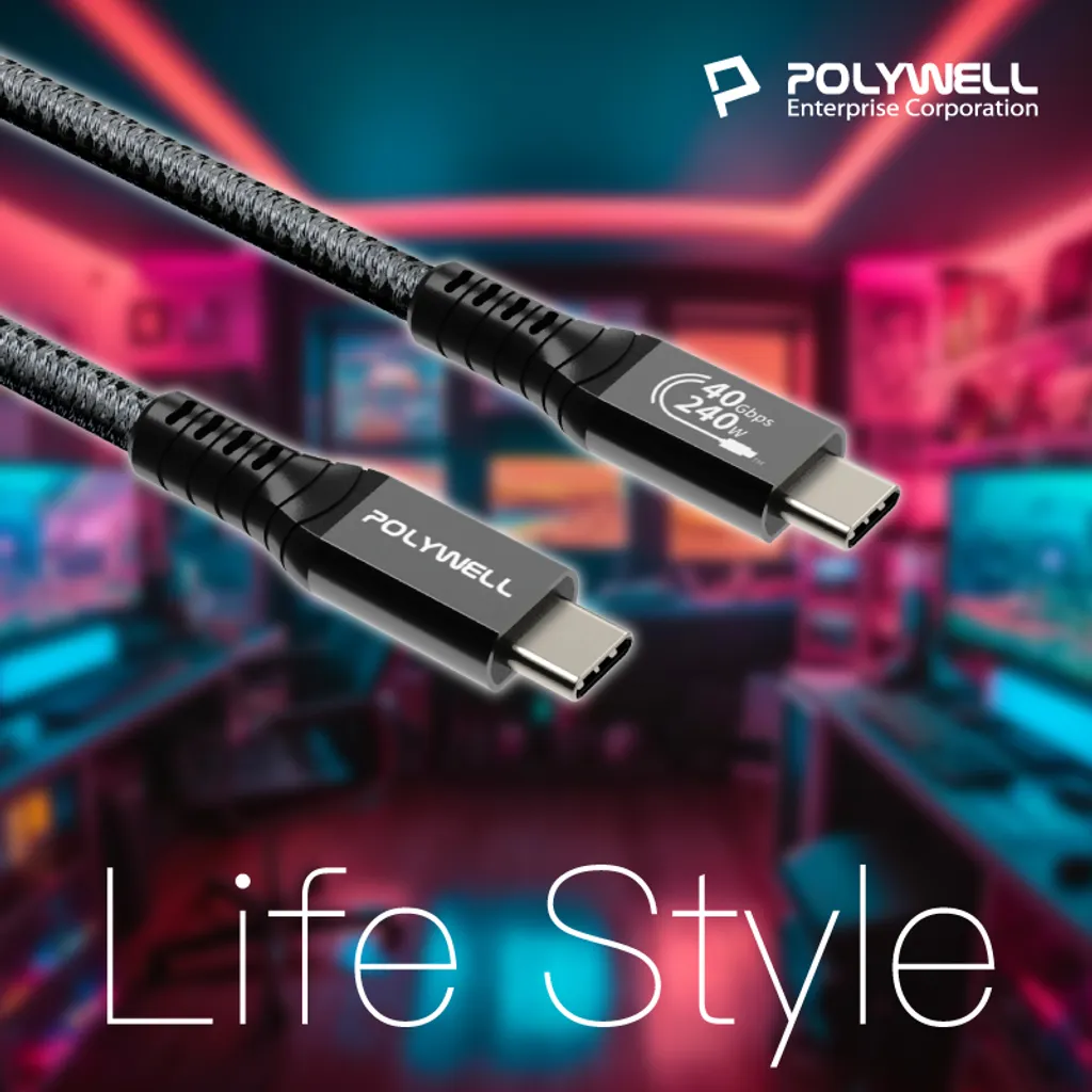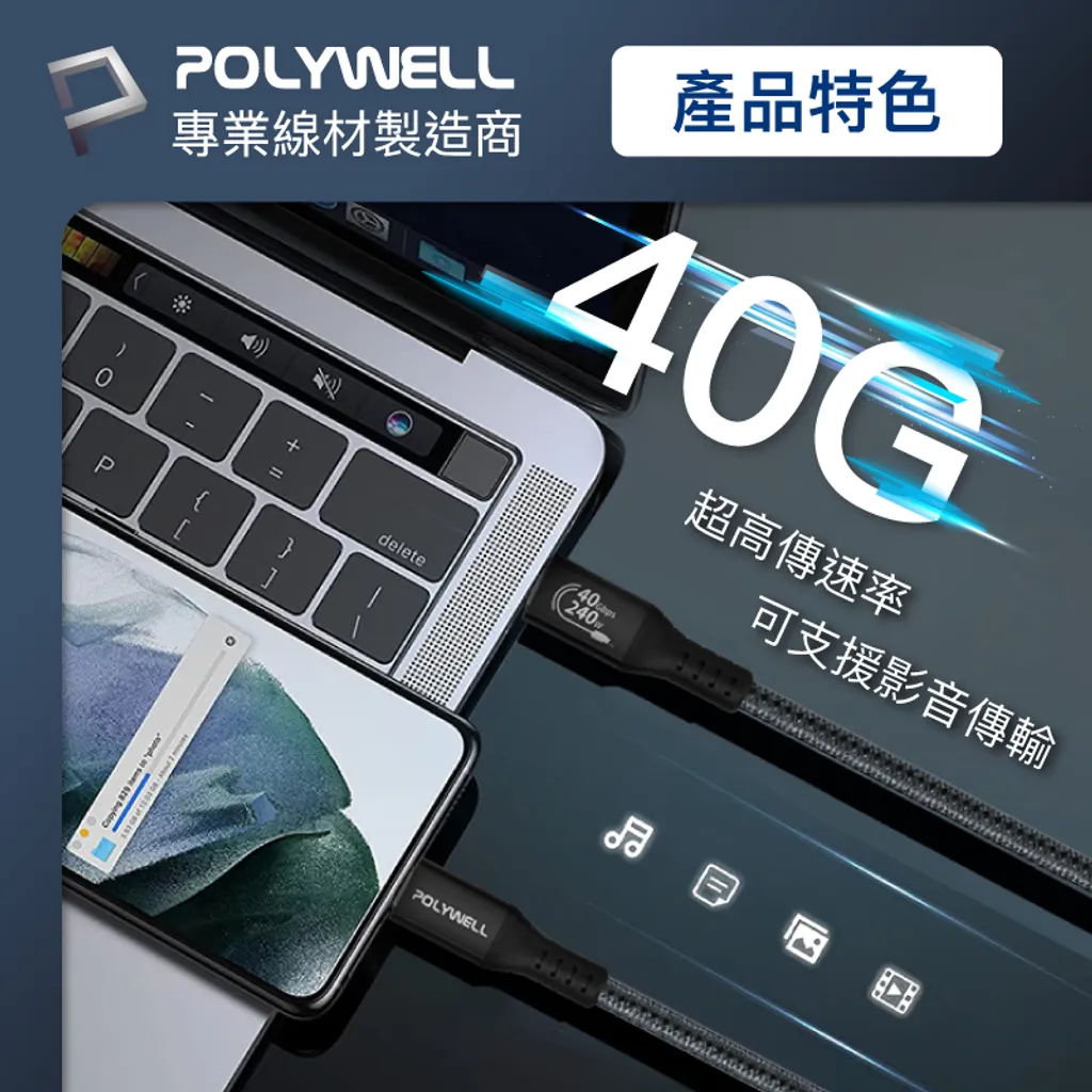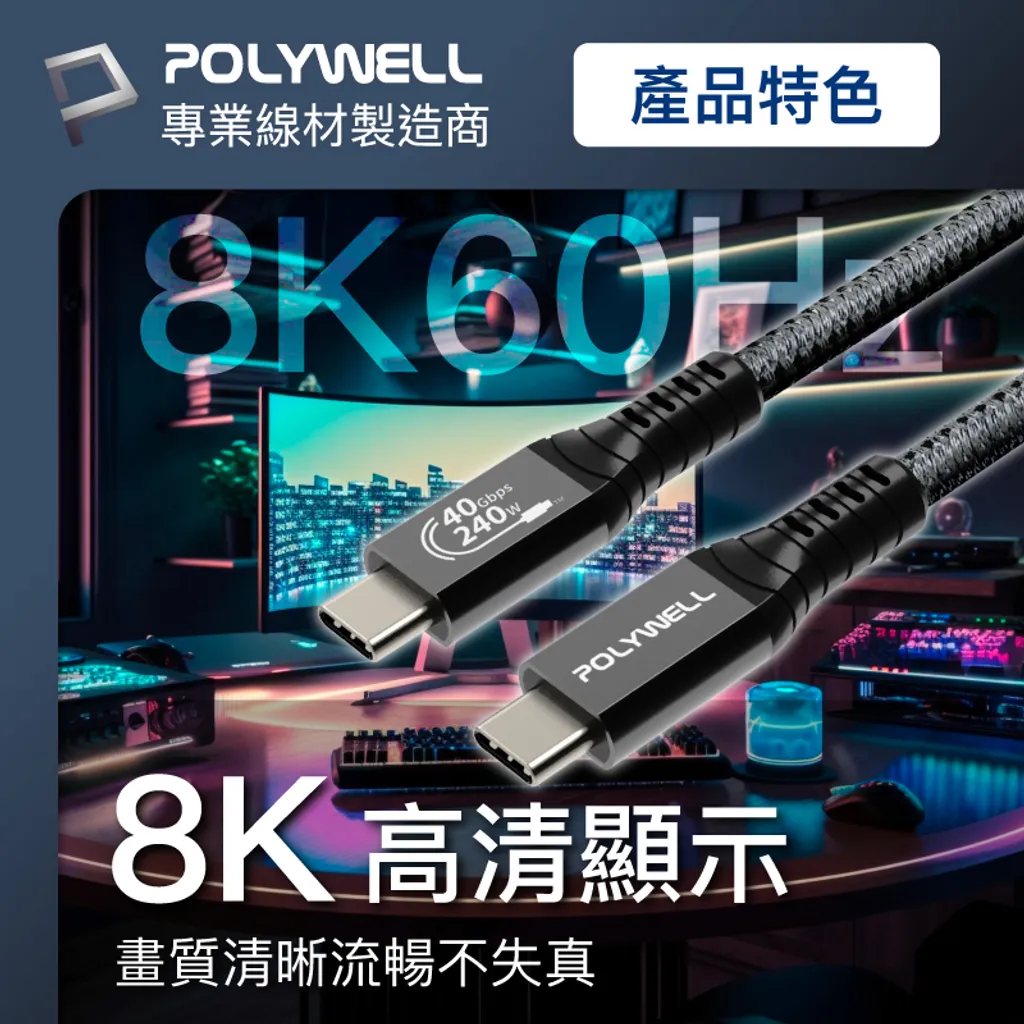 【POLYWELL】USB4 Type-C Gen3 40G 240W傳輸充電線 TID認證