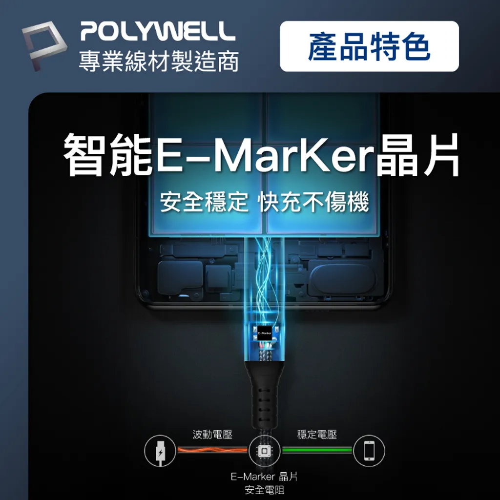 內建E-Marker PD智慧電源管理晶片, 充電最大功率可達240W
