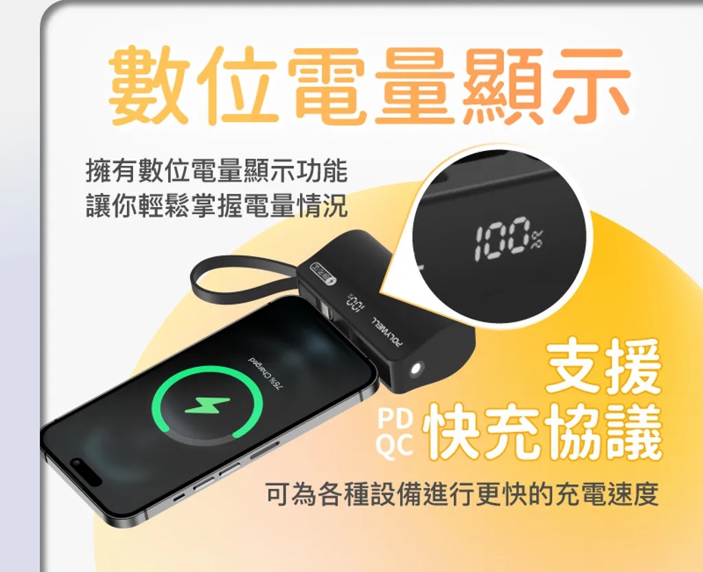 - 【5000mAh容量】電池容量可帶上飛機, 是外出旅遊緊急補電的好幫手 (iPhone15 Pro可充滿一次)