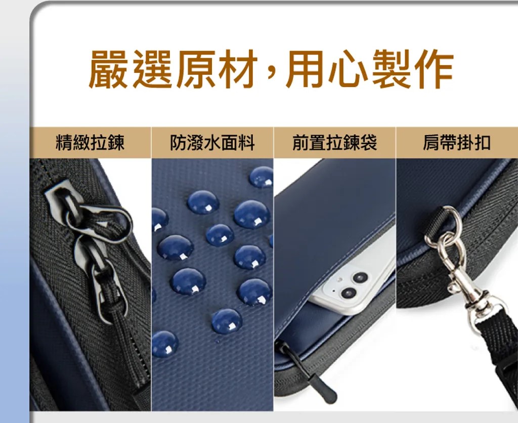 前置拉鍊袋 最外層拉鏈袋可放常拿取的證件或物品, 例:手機, 快速又方便
