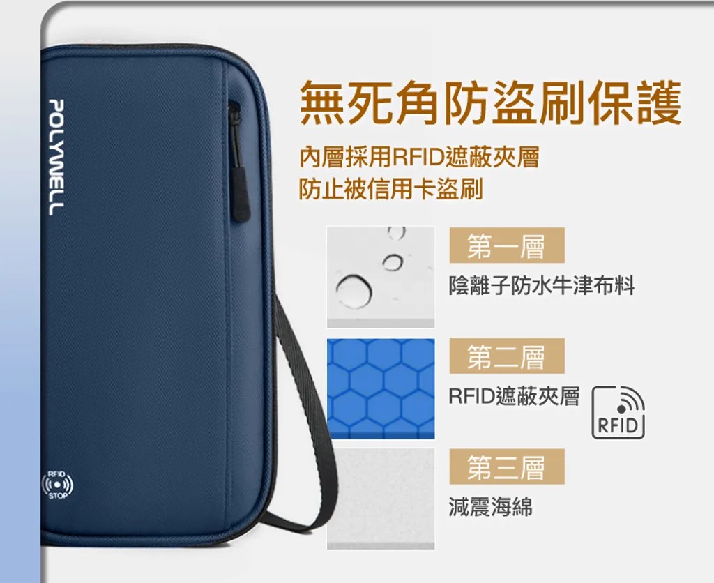 【POLYWELL】護照信用卡旅行收納包 RFID防護層 旅行收納袋