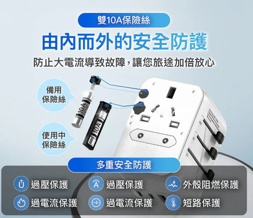 【多重保護機制】雙10A保險絲,多重防護機制,加上防火材質機身,充電穩定不過熱