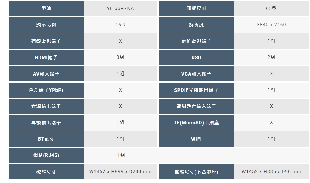 【HERAN禾聯】65型 4K聯網 液晶顯示器 YF-65H7NA