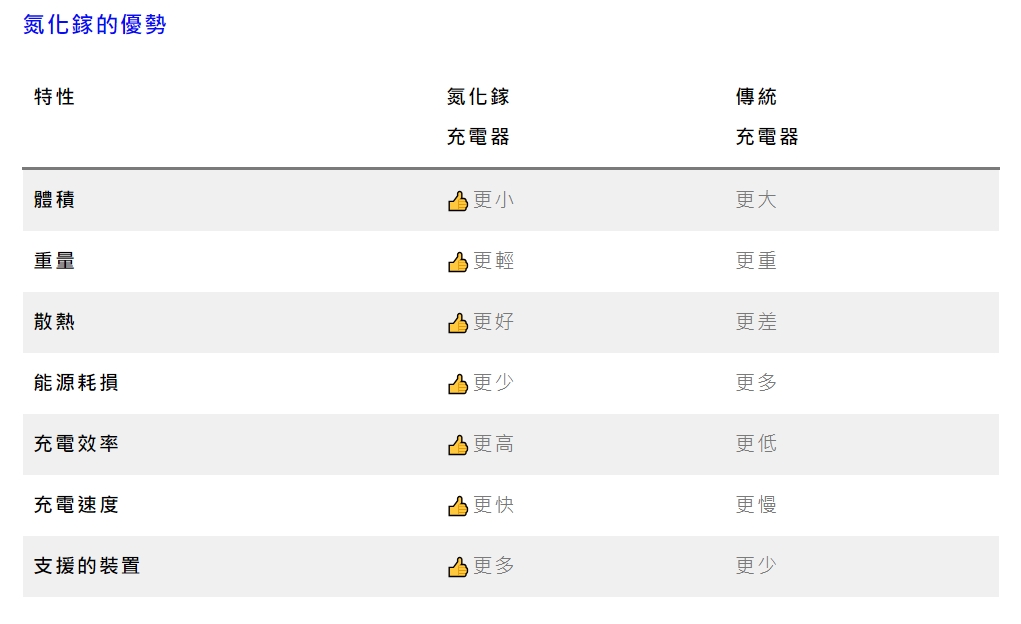 從 IOIO 65W氮化鎵全球用急速充電組的規格資料中可以發現不少亮點,首先就是氮化鎵(GaN),這是一種新型的半導體材料,相比傳統採用矽(Si)元件的充電器,有更多的優勢!絕對用起來有感,可以參考下方表格,基本上是完勝。