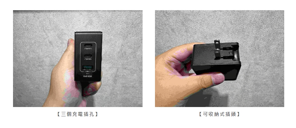 插座有三個充電孔,兩個typeC一個USB,可以同時使用非常方便,插座的接電處,也做成能收納的結構,不僅減少大量體積,也更不容易再攜帶過程中壓壞,或刺破刮壞其他東西設計的很好。