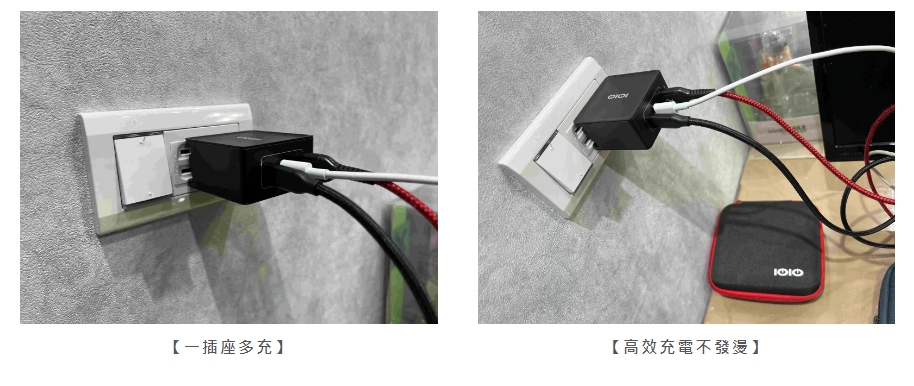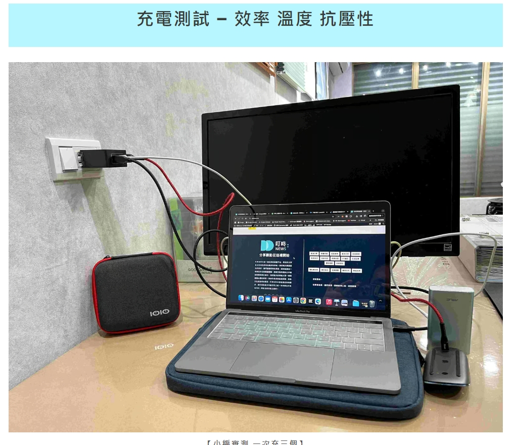 小編的座位旁邊只有一個插頭的空間,用了IOIO 65W氮化鎵全球用急速充電組後,一個充mac,一個充滑鼠或是手機,一個充行動電源(小編偷偷帶來公司充電~)。經過一頭三充的貪心實測,小編發現,插座竟然沒有發燙!而且充電效率沒有受到影響,不管是筆電、手機、還是行動電源,充飽的時間都跟原廠差不多,甚至更快一些,太令人驚艷了。