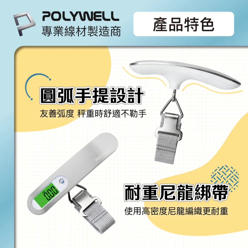 【 POLYWELL】電子行李秤 電子秤 4種單位切換 精準秤重 自動關機 附電池 出國旅遊