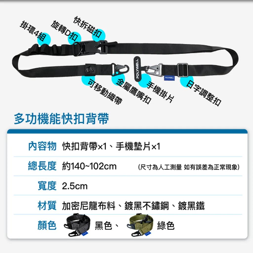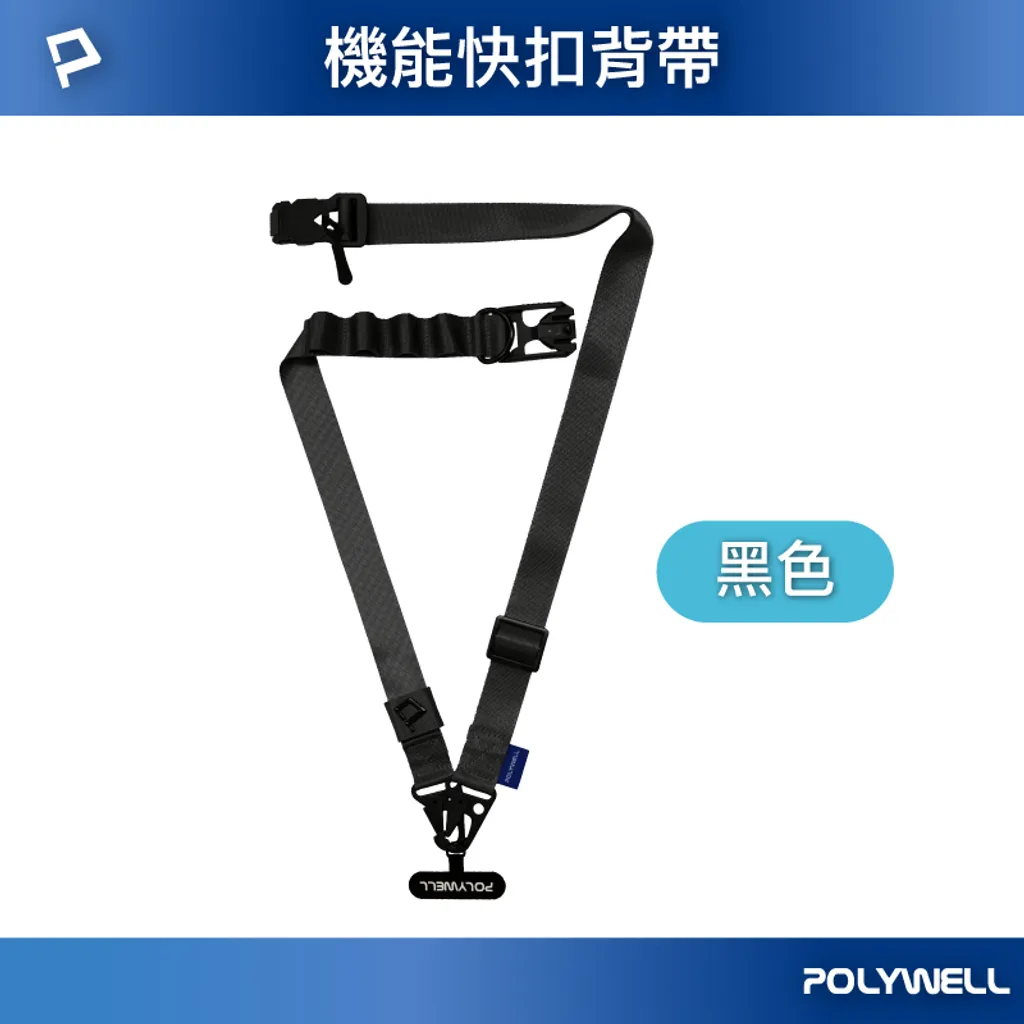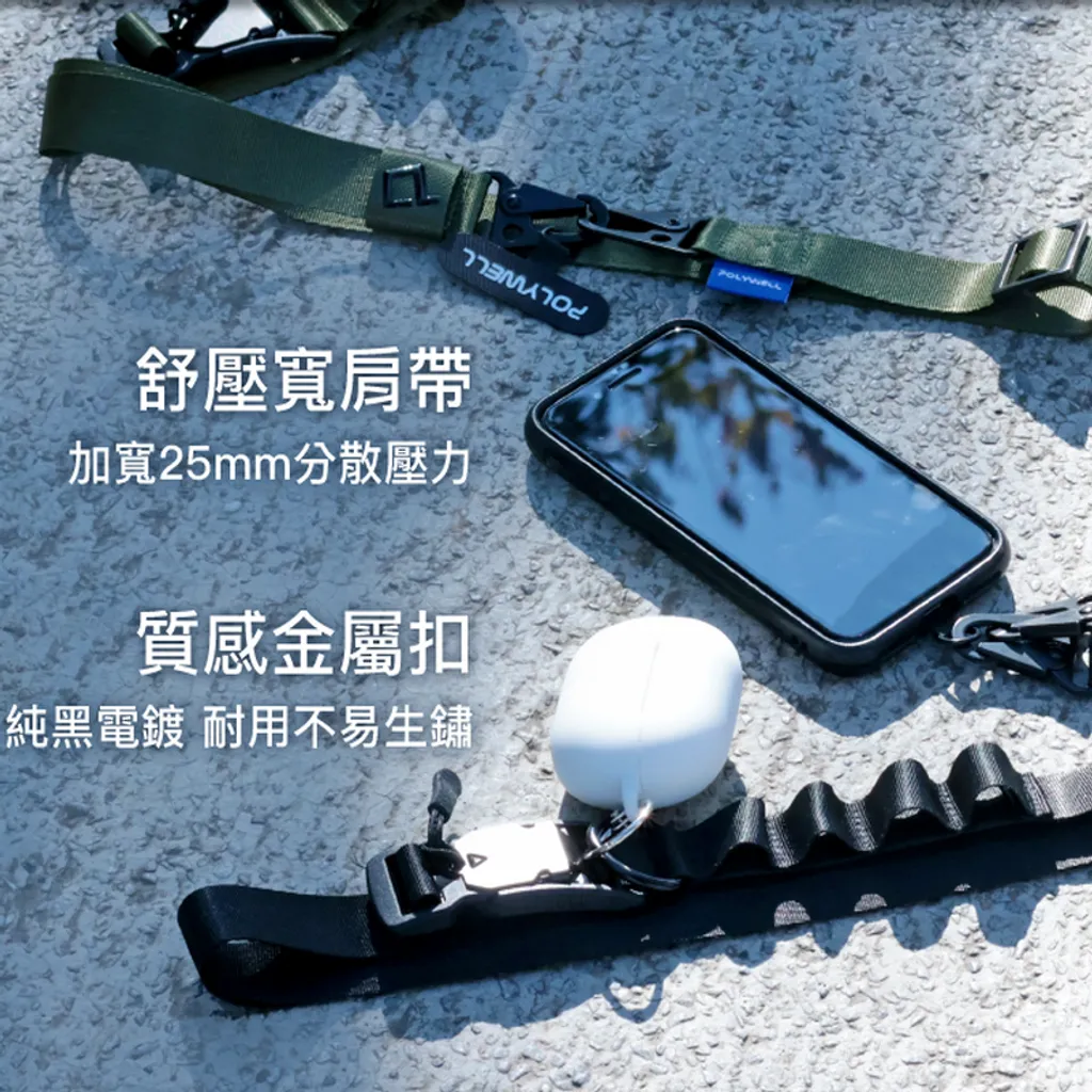 【Live168市集】POLYWELL 機能快扣型手機背帶 掛繩 吊繩 消光黑金屬件 可頸掛