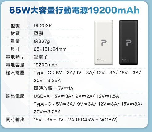 ◎ 產品:65W大功率行動電源
