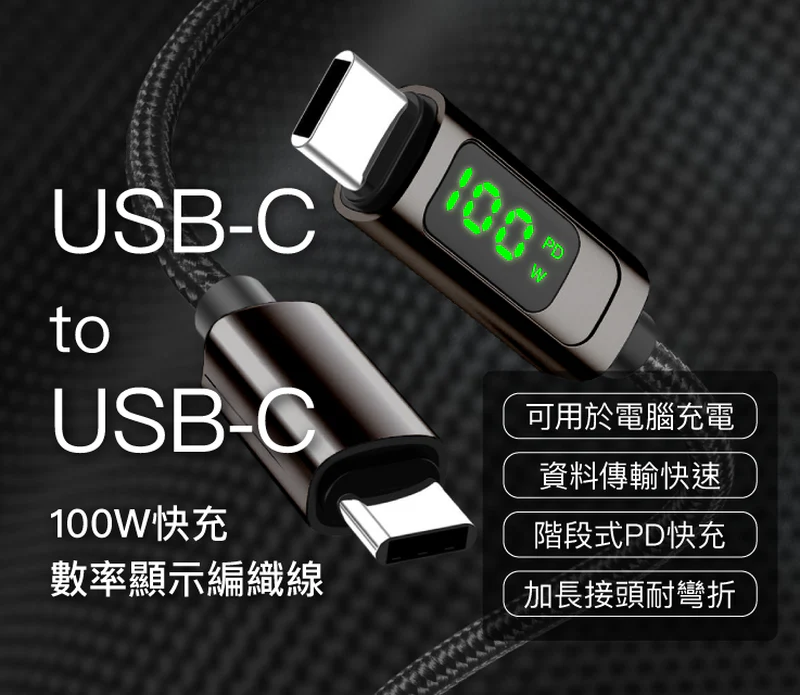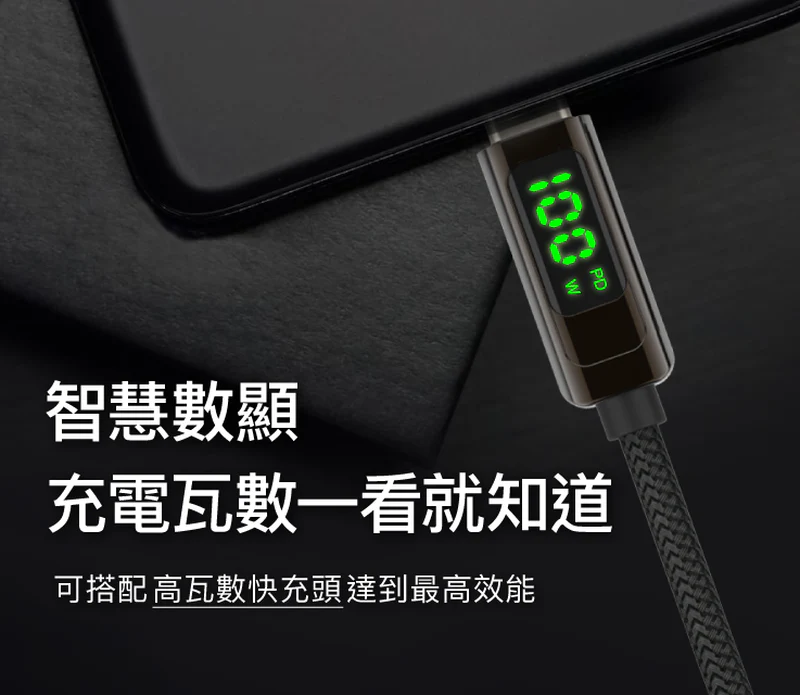 - 數位顯示即時充電功率(瓦數), 快充看得見