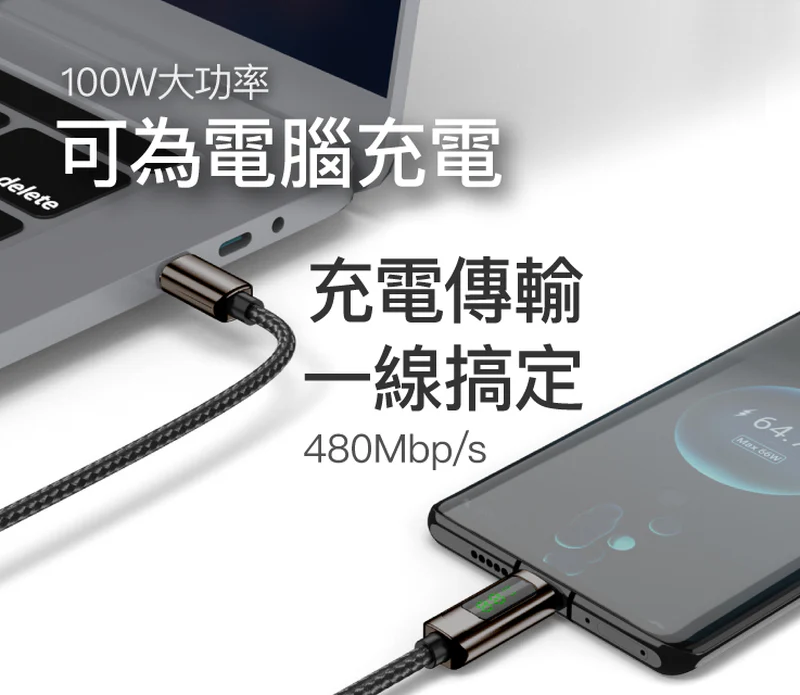 ◎ 品名: USB Type-C To Type-C 公對公 數位顯式PD快充線
