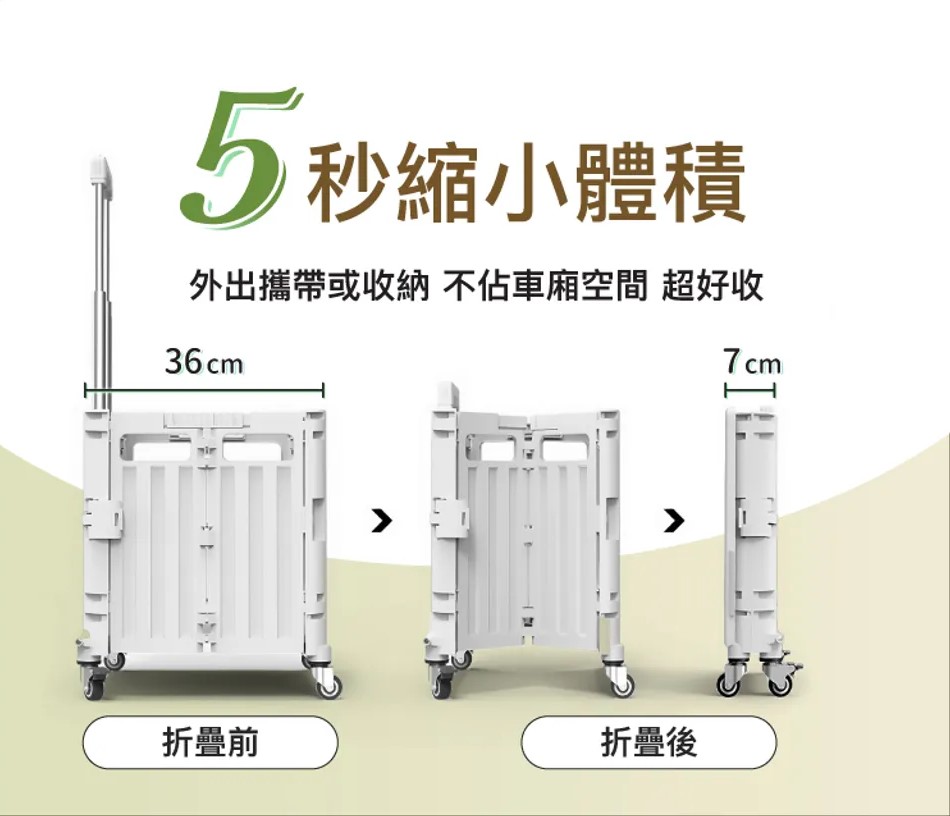 【可折疊設計】折疊收納厚度僅約7公分, 不佔車廂或居家空間, 要使用時可快速展開