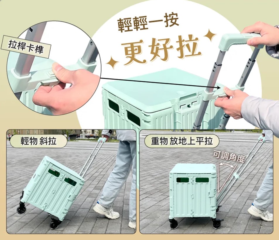 【Live168市集】POLYWELL 折疊式收納購物車 65L超大容量 萬向4輪 好推好拉 可水洗
