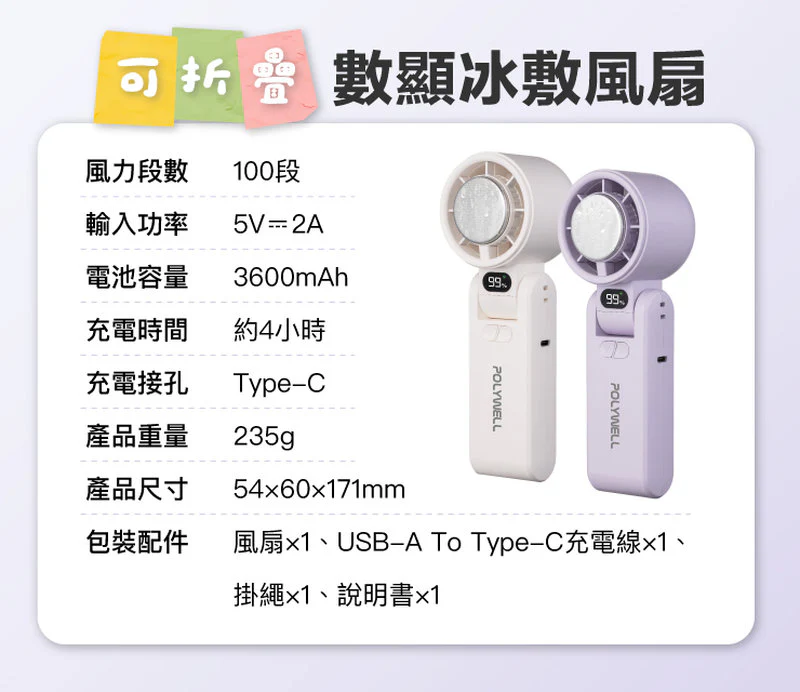 ◎ 產品:POLYWELL 可折疊數顯冰敷風扇