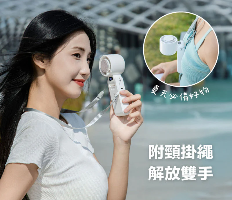 【輕巧好攜帶】附贈頸掛繩,可綁在風扇上,掛上脖子、輕鬆解放雙手