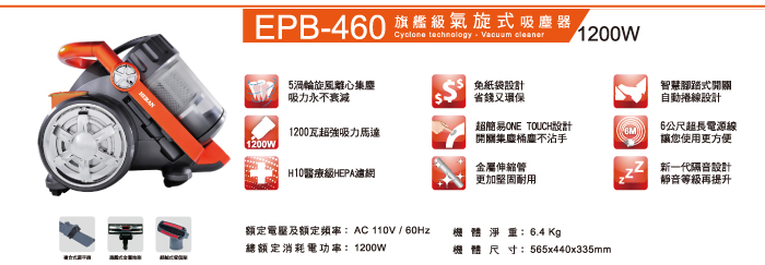 禾聯HERAN 旗艦級5渦輪離心氣旋式吸塵器EPB-460